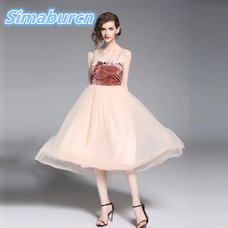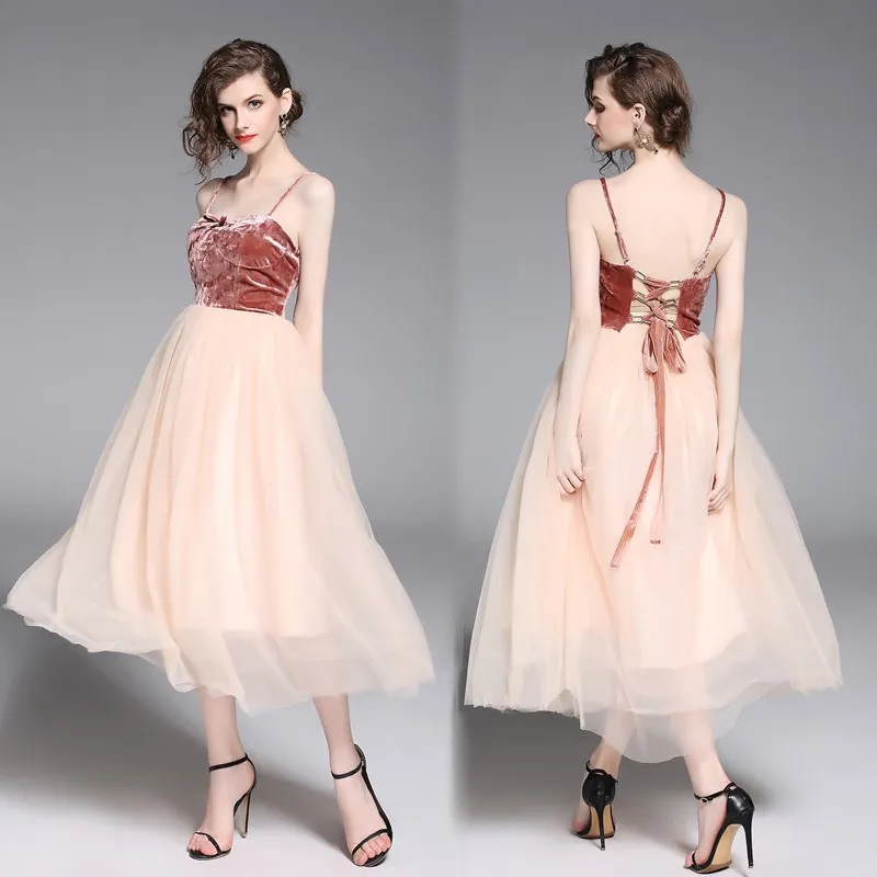2018 Summer Newly Style Women Lace Velvet Dress Sleeveless Femme