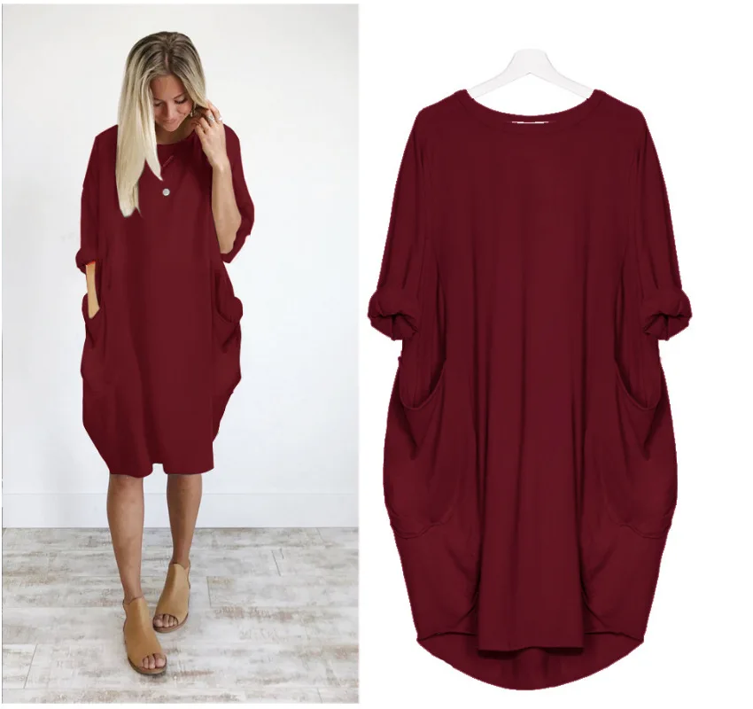 2019 new fashionAutumn Womens dresses Pocket Loose Dress Ladies Crew