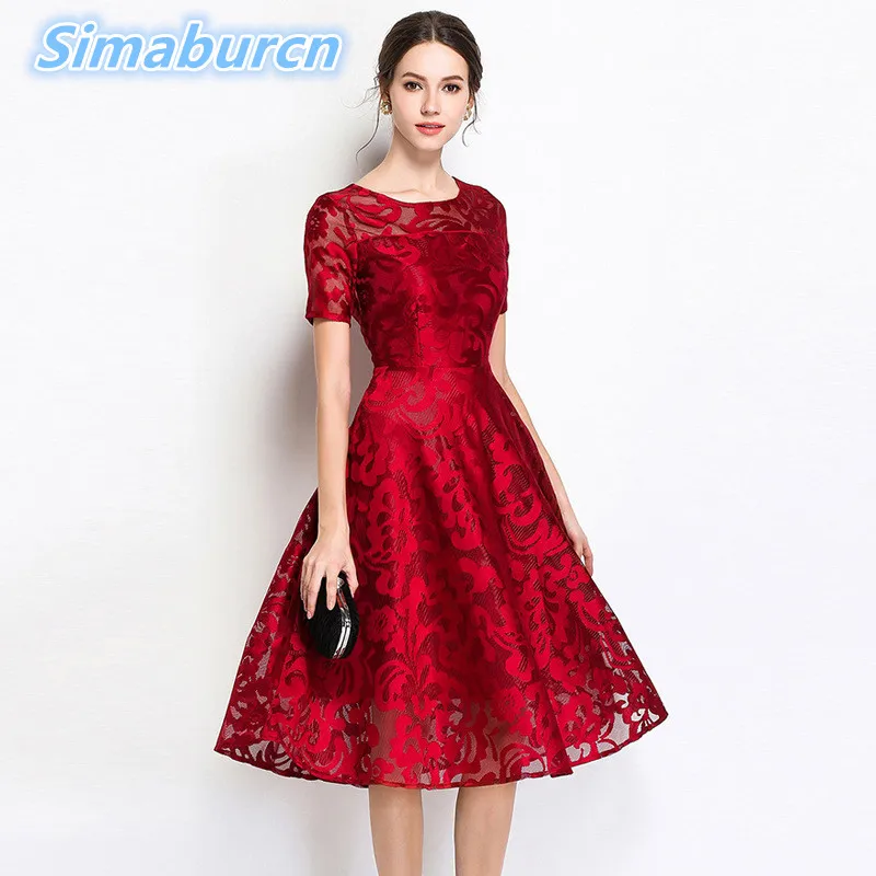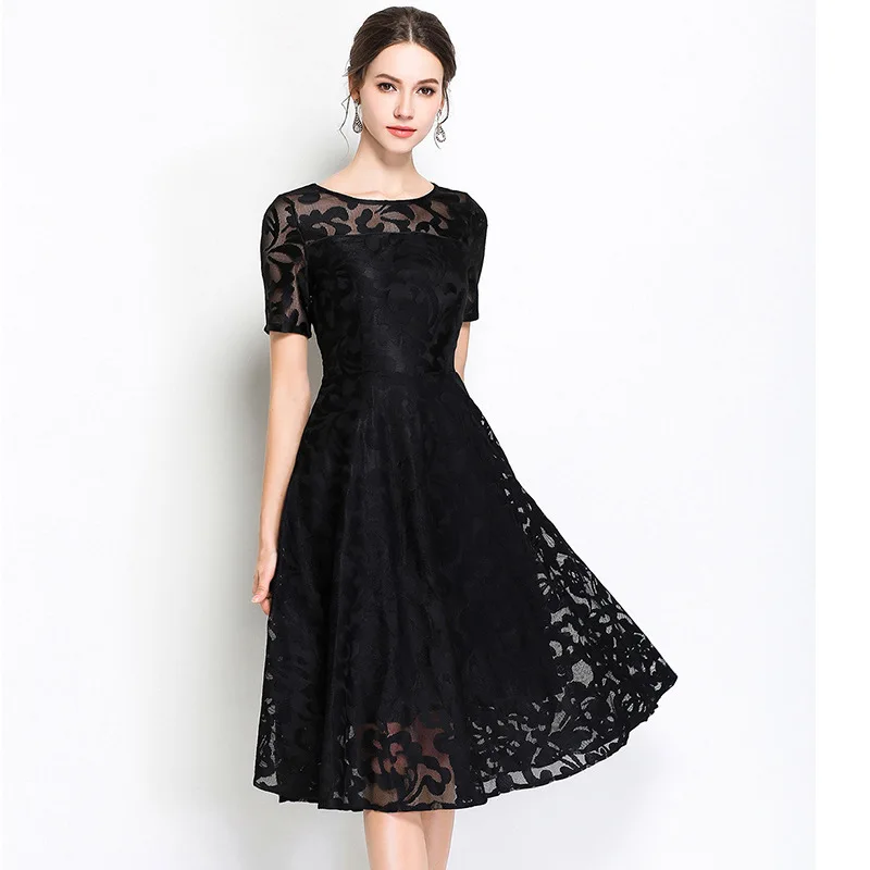 4XL Plus Size Women Dress Fashion Ladies Elegant Hallow Out Lace Dress