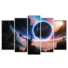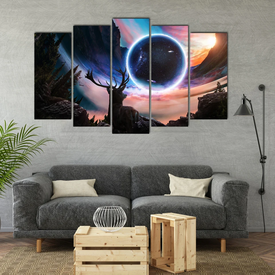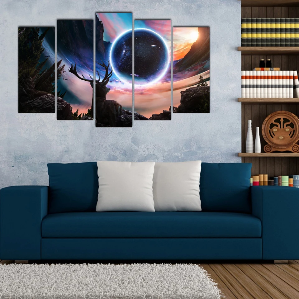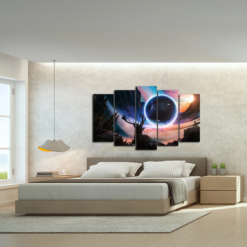 5 Pieces HD Canvas Painting deer and star background Paintings Modern