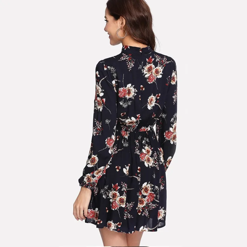 Well, before you decide to buy, it's good to look at the picture details about the product Autumn Floral Women Dress Multicolor Long Sleeve High Waist Loose Elastic Waist Elegant Dress Female Tie Neck Spring Dresses 2XL. Next, you can directly visit the official store to find out the full description, prices and discounts offered.