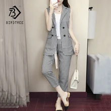 Picture for Black White Plaid Double Breasted Notched Women Blazer Vest & High Waist Pants Elegant Office Lady Blazer Suits Hots S87440X