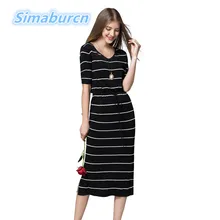Picture for Elegant Slim Female Long Dress Knitted Dresses Women Short Sleeve Sexy V-Neck Casual Spring Straight Dress Ladies Striped Dress