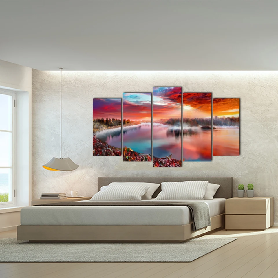 HD Framed 5 Pieces Abstract Art Psychedelic & river Canvas Art Scenery