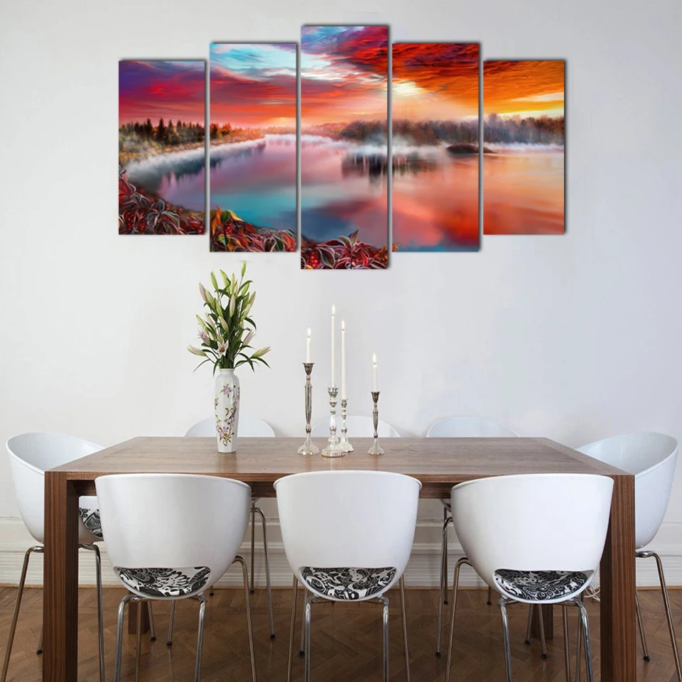 Picture for HD Framed 5 Pieces Abstract Art Psychedelic & river Canvas Art Scenery Paintings For Living Room Home Decoration cheap Shipping