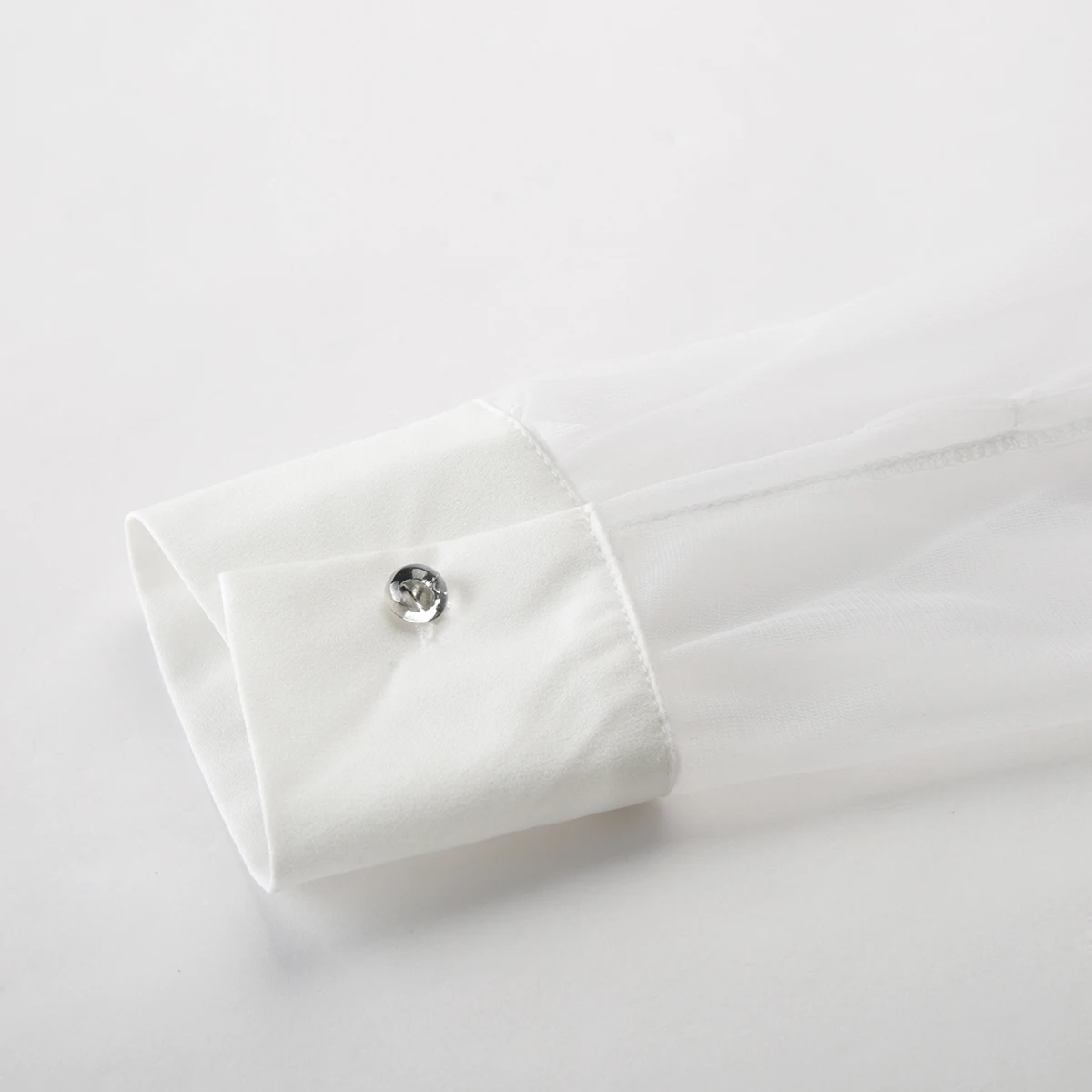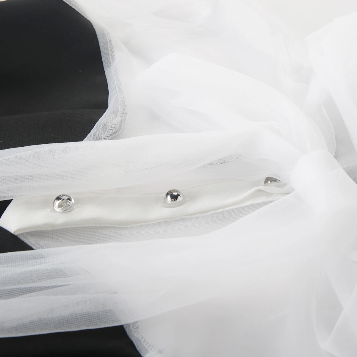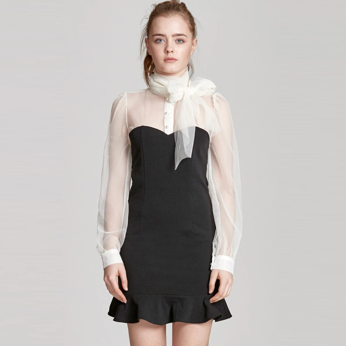 Picture for HDY haoduoyi Simple Contrast Color Stitching Perspective Woman's Gown High Collar Bow Decoration Ruffled Hem Long Sleeve Dress