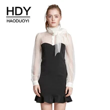 Well, before you decide to buy, it's good to look at the picture details about the product HDY haoduoyi Simple Contrast Color Stitching Perspective Woman's Gown High Collar Bow Decoration Ruffled Hem Long Sleeve Dress. Next, you can directly visit the official store to find out the full description, prices and discounts offered.