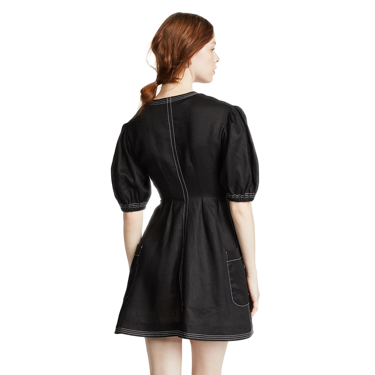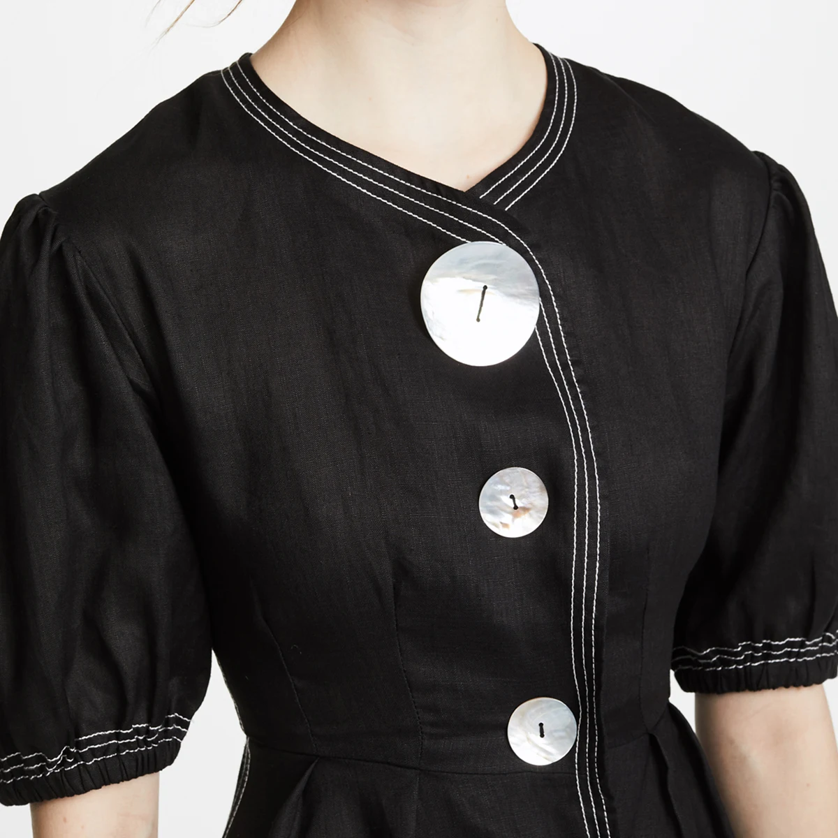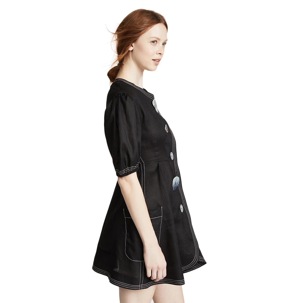 Picture for HDY Haoduoyi Women Big Button Embellished Half Sleeve A-Line Mini Dress Side Pocket High Waist Office Dress for Female