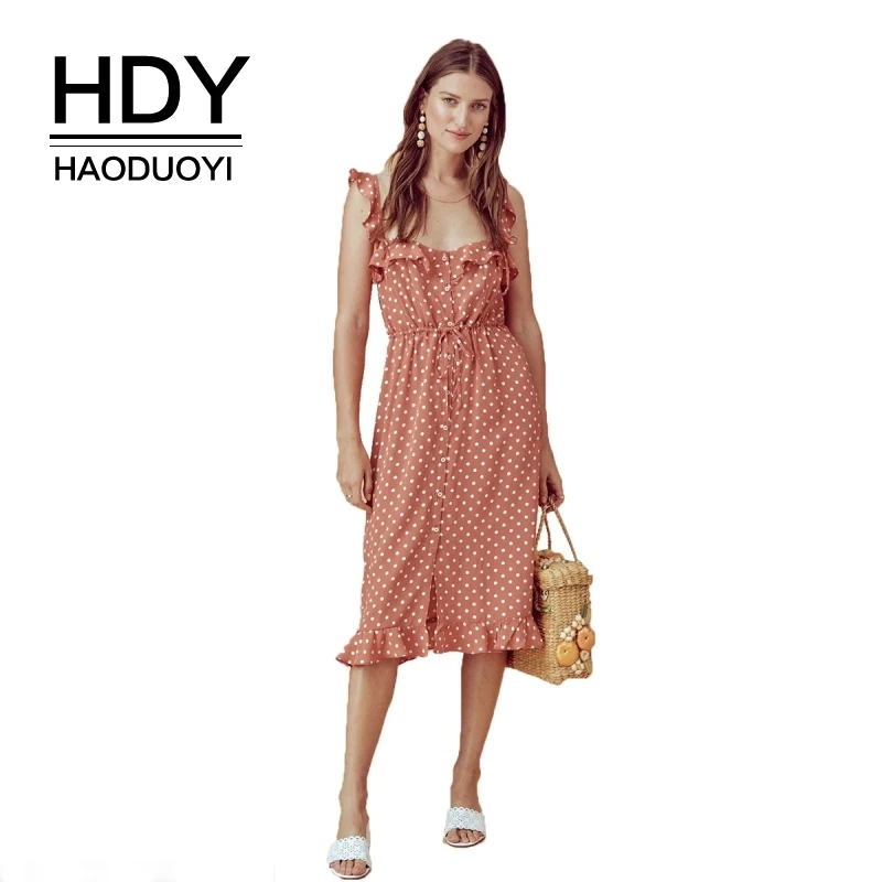Well, before you decide to buy, it's good to look at the picture details about the product HDY Haoduoyi Women Sleeveless Ruffles Strap Knee Length Dress With Tie Waist Backless High Waist Wave Point Sweet Midi Dress. Next, you can directly visit the official store to find out the full description, prices and discounts offered.