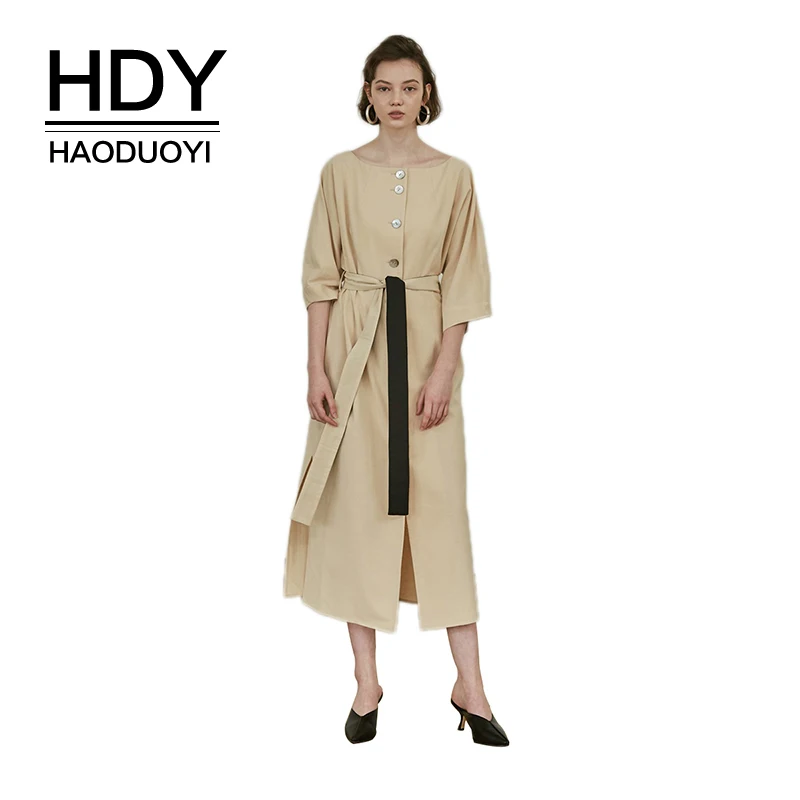 Well, before you decide to buy, it's good to look at the picture details about the product HDY Haoduoyi Women Solid Single-breasted Lantern Three Quarter Sleeve Waist Tie Midi Dress Office Lady Side Slit Autumn Dress. Next, you can directly visit the official store to find out the full description, prices and discounts offered.
