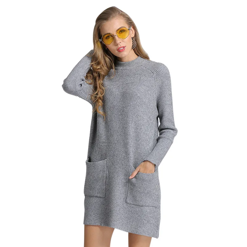 Loose Knitted Sweater Dress Women Elegant Mini Knit Autumn Winter