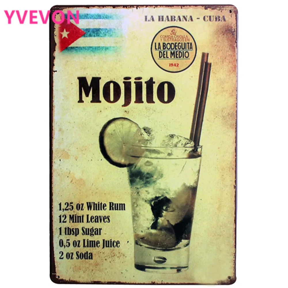 Mojito Drink Metal Decor Sign Vintage Plaque Cocktail Board for Hotel