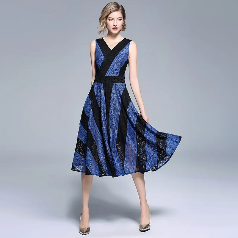 Picture for New Arrivals Summer Long Dress Women V Neck Sexy Lace Sleeveless Dresses Female Streetwear Casual Blue Dress Vestidos 2018