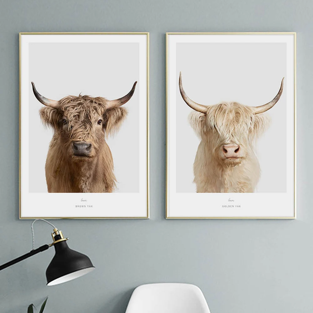 NUOMEGE Nordic Animal Yak Painting Wall Art Canvas Painting Nordic