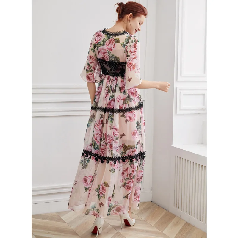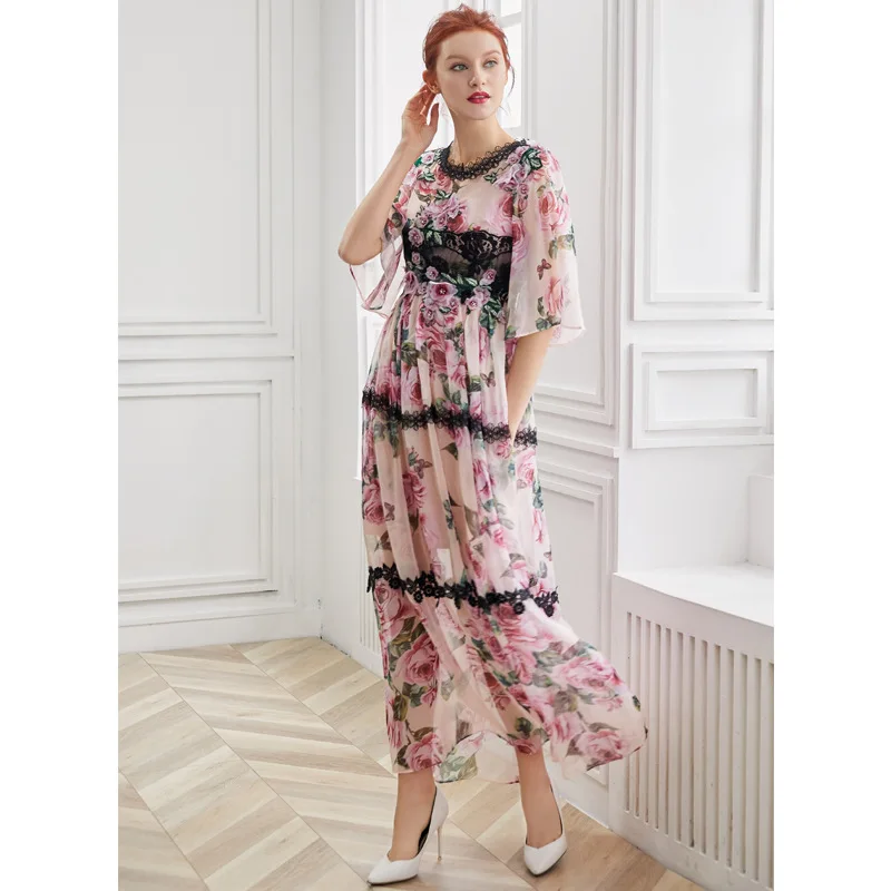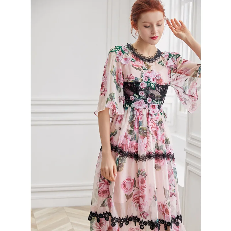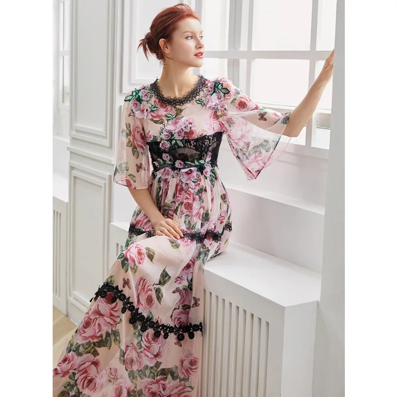 If You want to buy for Dresses , then Pink Party Long Dress Women Elegant Runway Two Piece Dresses Flare Half Sleeve Rose Floral Print Lace Mesh Sweet vestidos verano may be make you love and fits your needs. Buy Pink Party Long Dress Women Elegant Runway Two Piece Dresses Flare Half Sleeve Rose Floral Print Lace Mesh Sweet vestidos verano it here and now, please check the discount offer to get the best price.