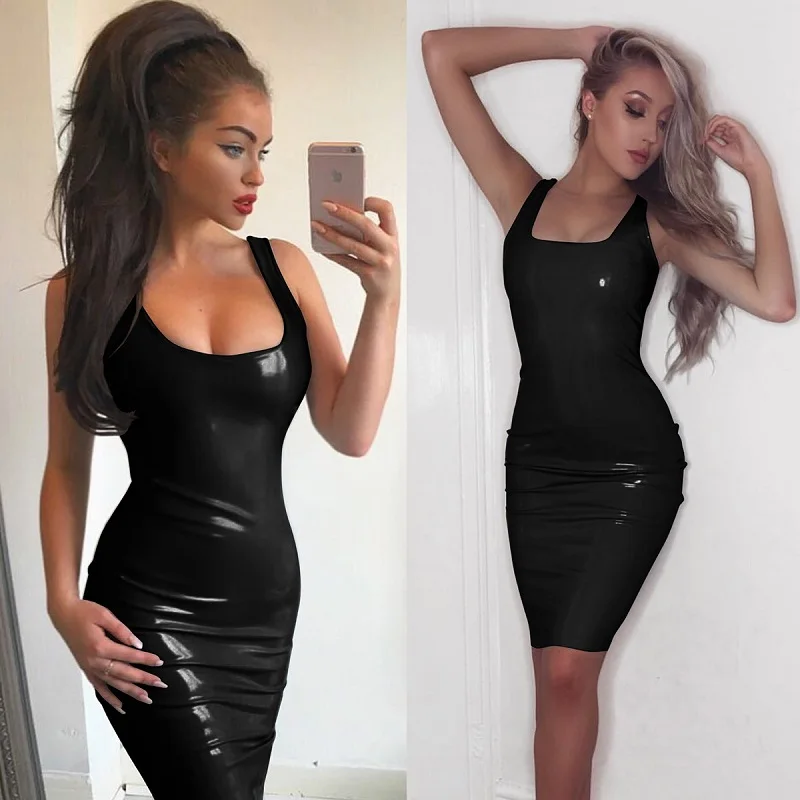 Sexy Black Latex Dress Women Summer Club Dress Sheath Sleeveless