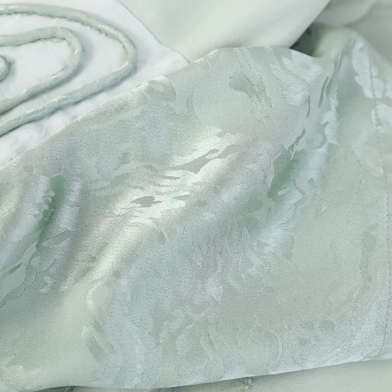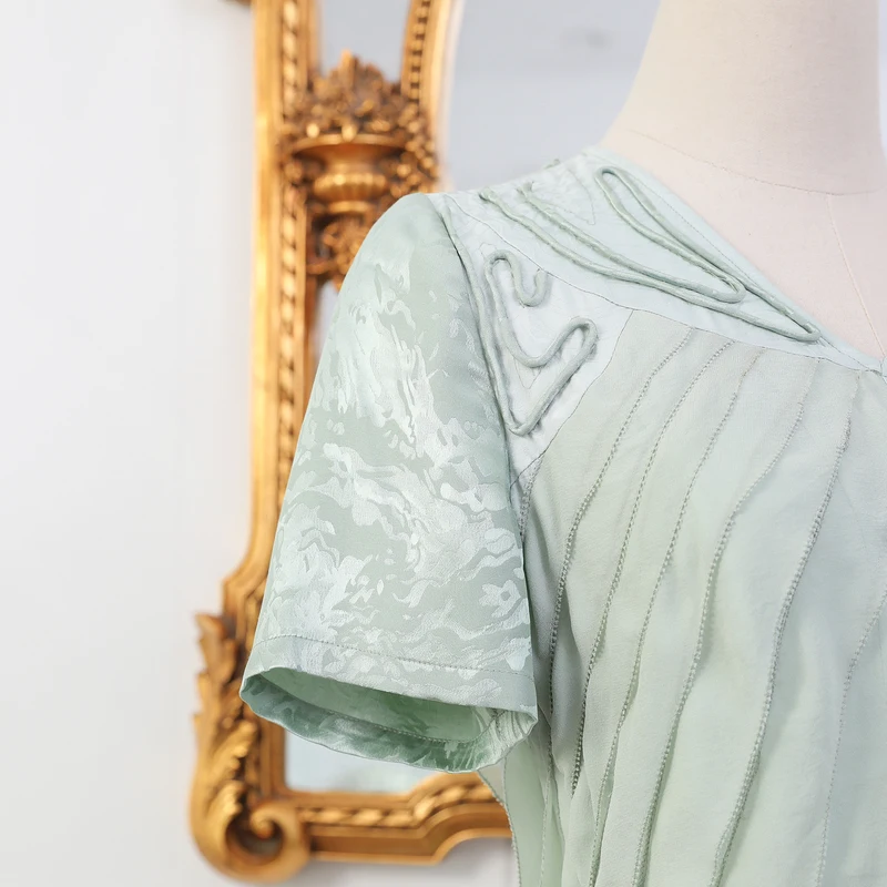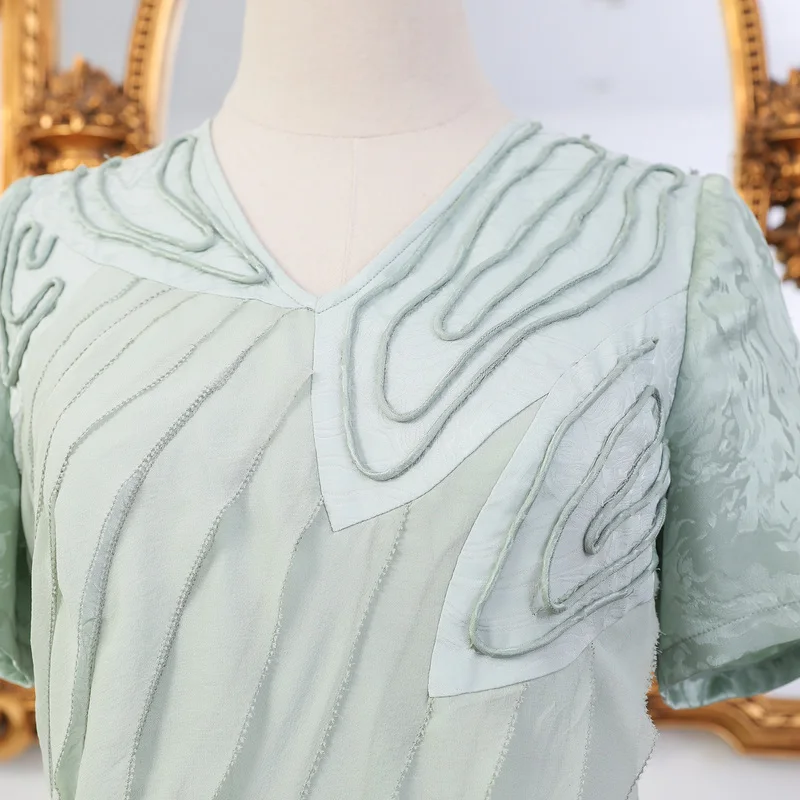 VOA 100% Silk Midi Dress Women Mint Green V Neck Mori Girl Summer