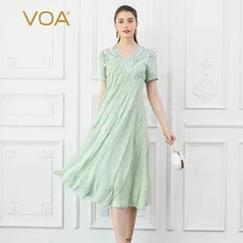 Well, before you decide to buy, it's good to look at the picture details about the product VOA 100% Silk Midi Dress Women Mint Green V Neck Mori Girl Summer Pleated Dresses Short Sleeve Sweet Cute Elegant vestido A10036. Next, you can directly visit the official store to find out the full description, prices and discounts offered.