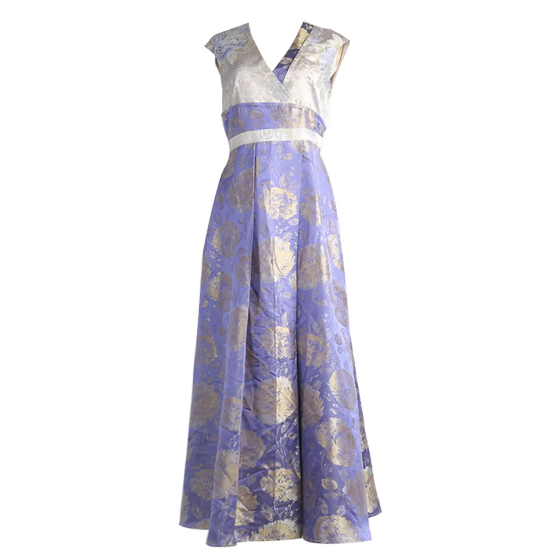 Picture for VOA Purple Silk Dyed Jacquard Off Shoulder Dresses Evening Party Short Sleeves Ankle-Length A-Line Ankle-Length Vestidos A5685