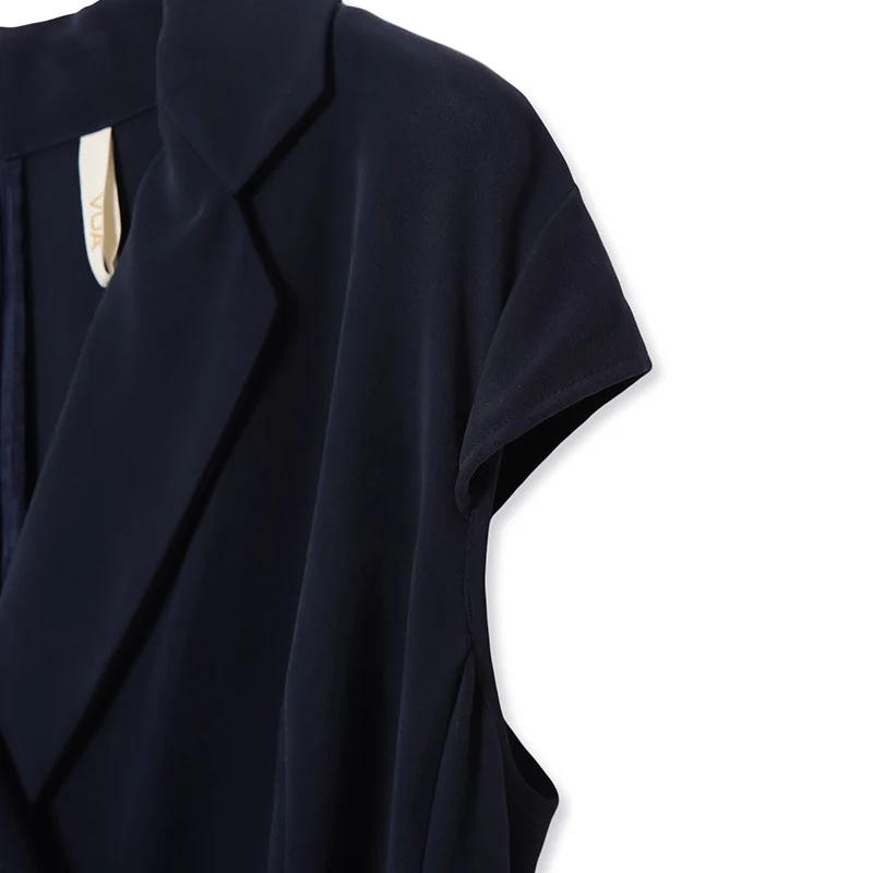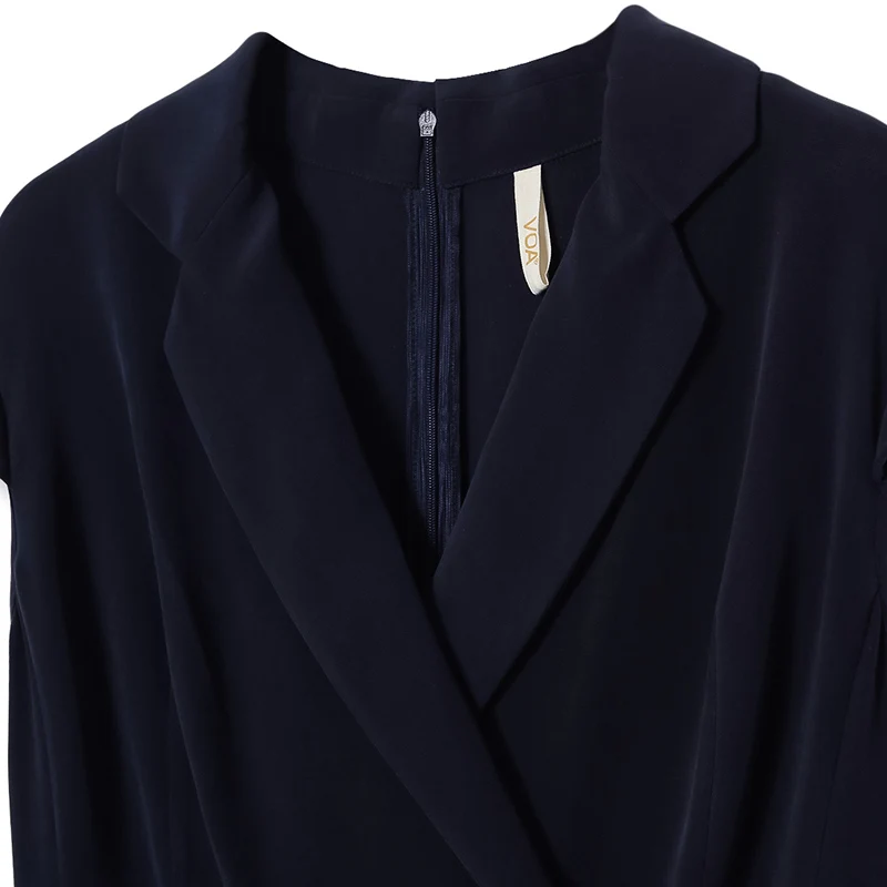 VOA V black collar solid heavy silk dress female 2016 spring autumn