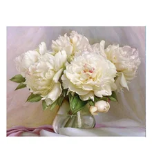 WEEN Blooming White Peony Diy Painting By Numbers Flower Oil Painting