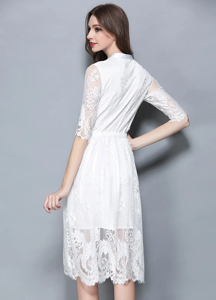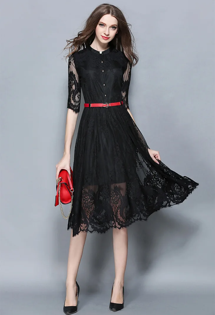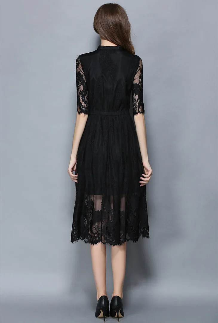 2017 Elegant Party Casual Half Sleeve Dresses Black White Lace