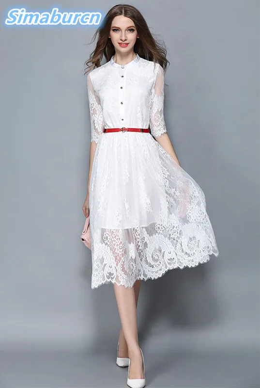 Picture for 2017 Elegant Party Casual Half Sleeve Dresses Black White Lace Stitching Hollow Out Summer Dress Plus size Vestidos With Belt