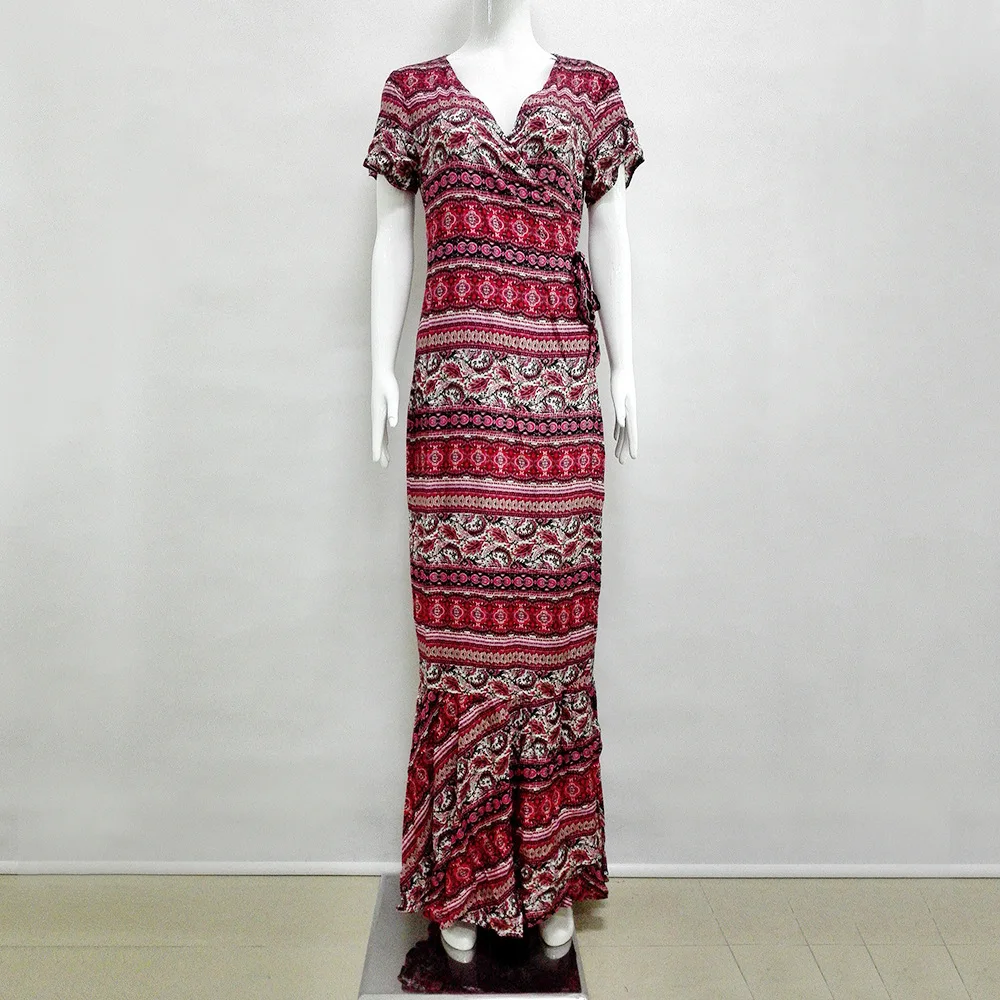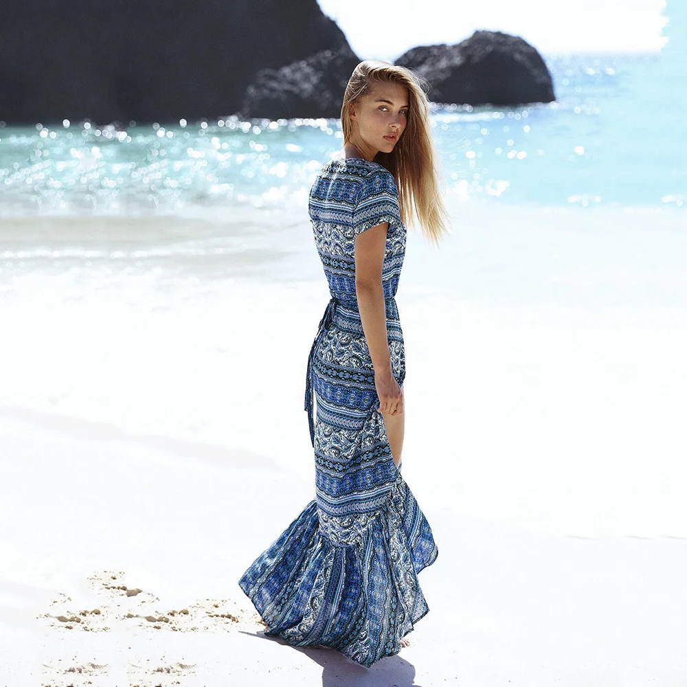 Casual Bohemian Printed Chiffon V-Neck Long Dress For Female