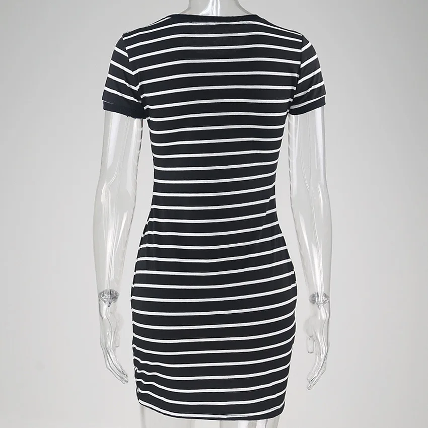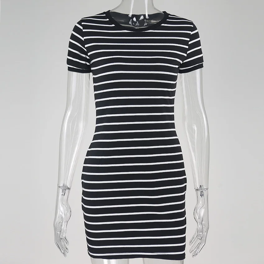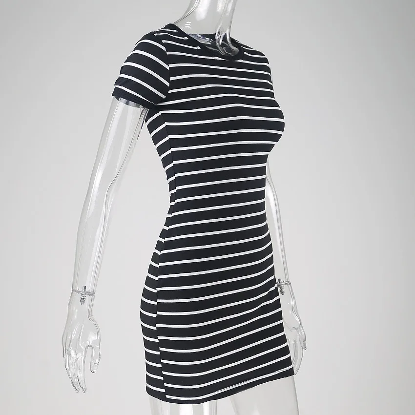 Picture for 2017 Summer Casual Sexy Striped Dress Women O-Neck Short Sleeve Club Bodycon Female T Shirts Dresses Slim Sheath Mini Vestidos