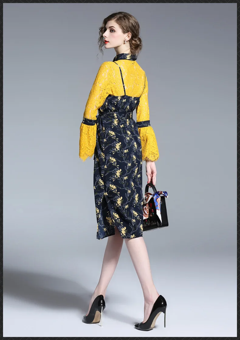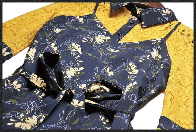 Picture for 2017 Women Fake Two Piece Patchwork Casual Summer Floral Dress Vestidos Appointment Party Bodycon Office Work Dresses