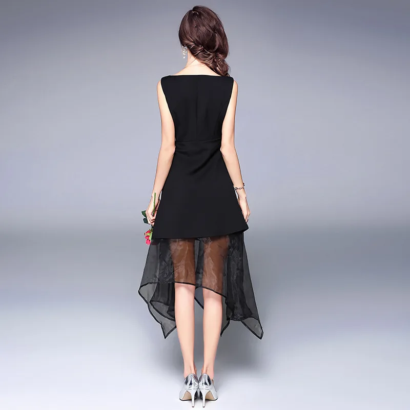 2018 Summer Dress Women New Fashion Stitching Perspective Solid Color