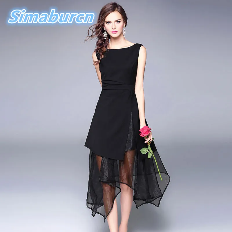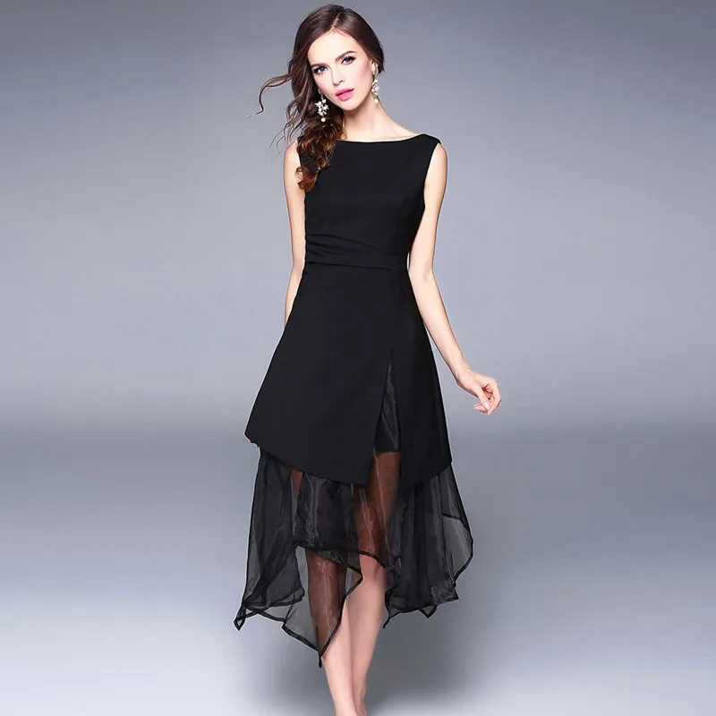 Picture for 2018 Summer Dress Women New Fashion Stitching Perspective Solid Color O-Neck Sleeveless Loose OL Office Ladies Dresses Wholesale