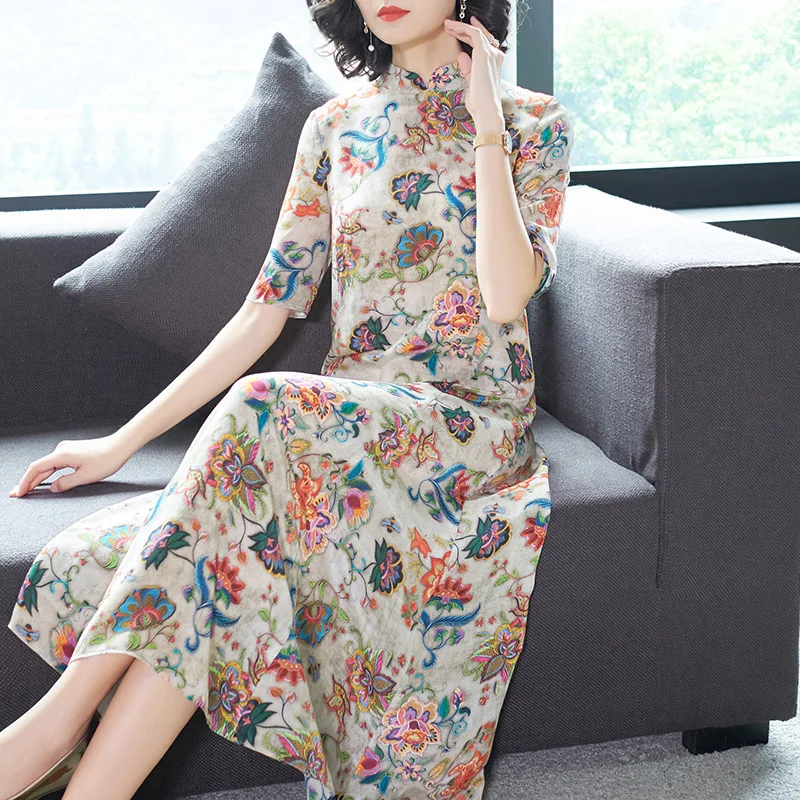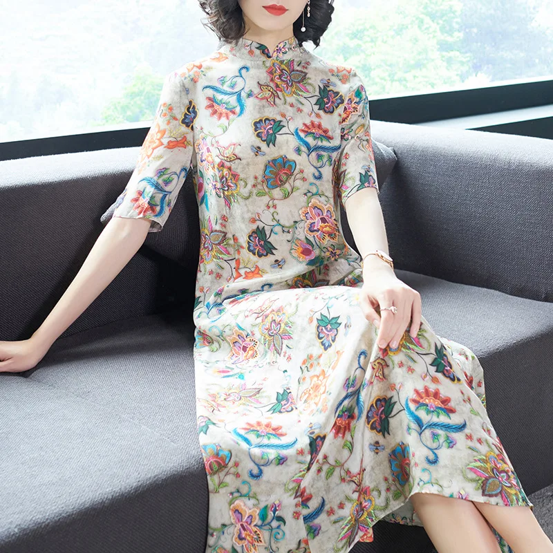 Cheongsam Dresses Noble Female Embroidery Vestidos Femme
