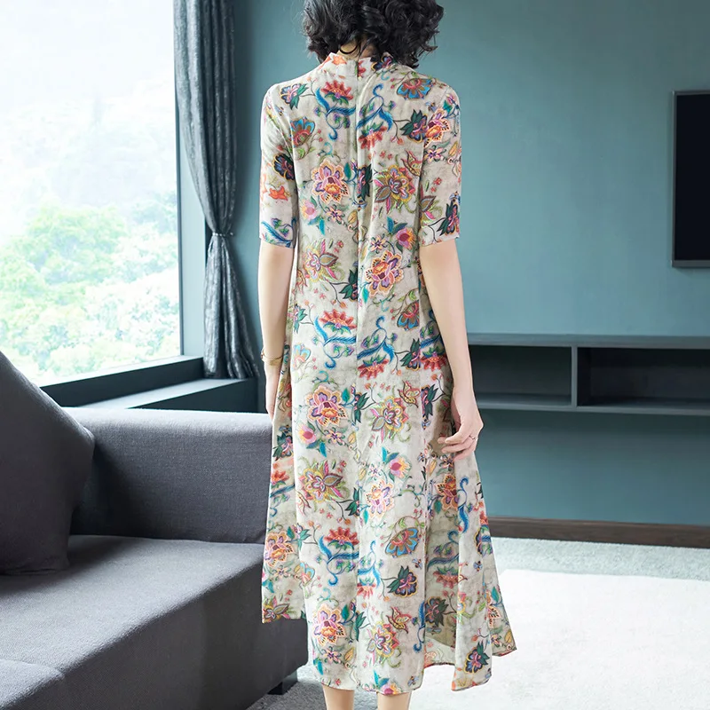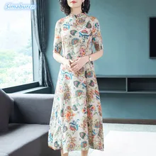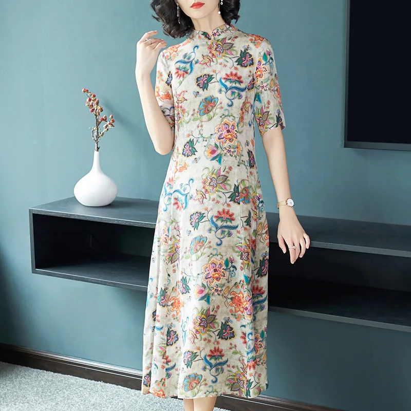 Picture for 2018 Vintage Apricot Dress Women Spring Summer Chinese Style 100% Silk Cheongsam Dresses Noble Female Embroidery Vestidos Femme
