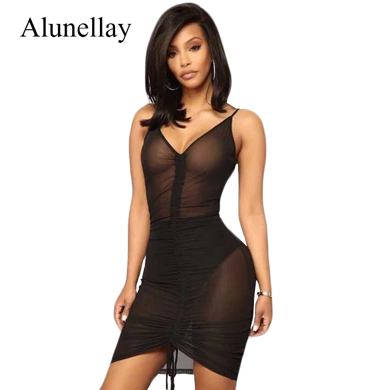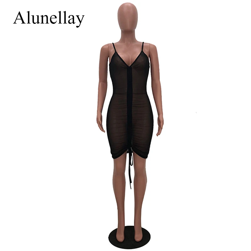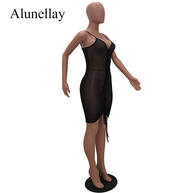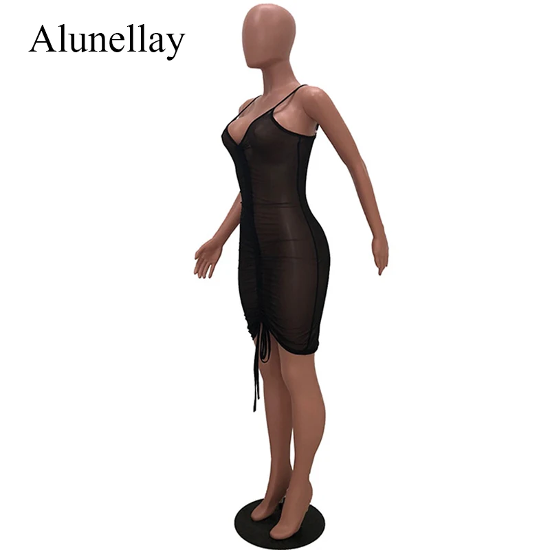 Picture for Alunellay 2018 Sexy See Through Mesh Dresses Women Spaghetti Strap V-Neck Sleeveless Dress Summer Bodycon Party Dresses Feminino