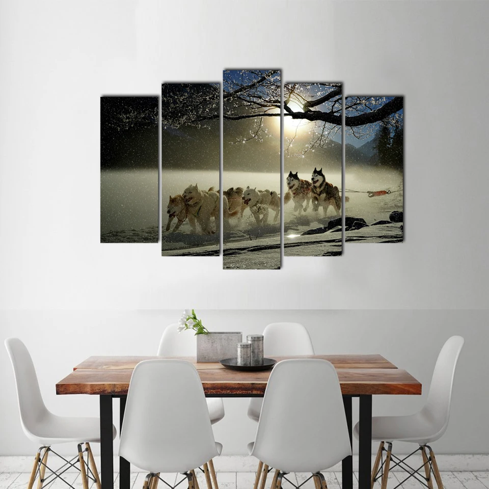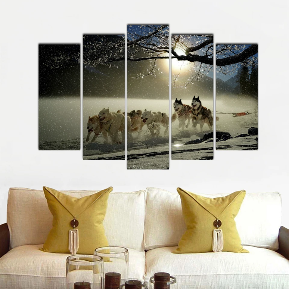 Artwork HD Prints Home Decoration 5 Pieces winter and dogs Wall Art