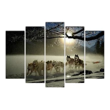 Picture for Artwork HD Prints Home Decoration 5 Pieces winter and dogs Wall Art Living Room Pictures Canvas Painting Cairnsi Free Shipping