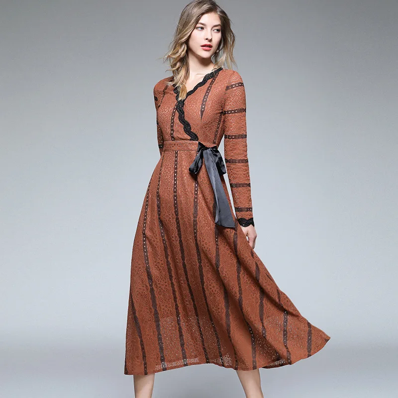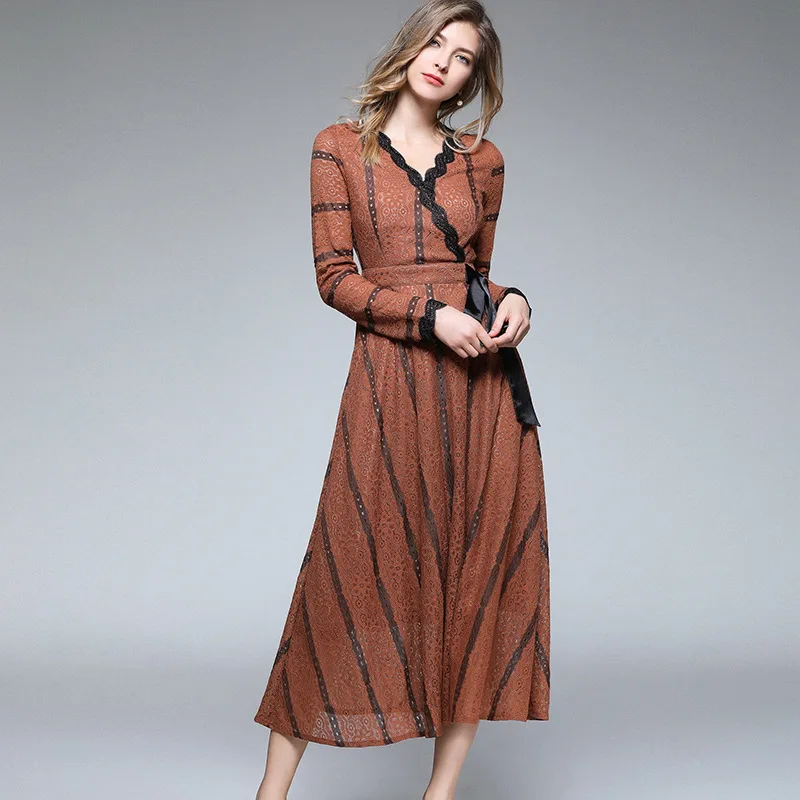 If You want to buy for Dresses , then Autumn High Waist Lace Dress Women Casual Loose Fashion V-neck Sexy Patchwork Caramel Colour Long Dresses Femme Vintage Vestidos may be make you love and fits your needs. Buy Autumn High Waist Lace Dress Women Casual Loose Fashion V-neck Sexy Patchwork Caramel Colour Long Dresses Femme Vintage Vestidos it here and now, please check the discount offer to get the best price.
