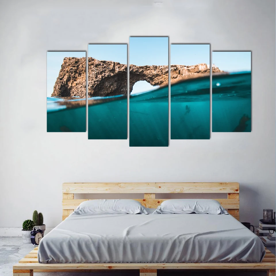 Picture for Canvas Painting Vintage Wall Art Frame Printed Pictures 5 Panel Seascape Poster Photo For Living Room Decor