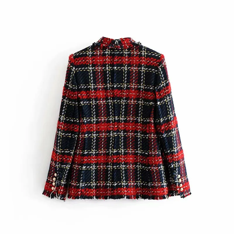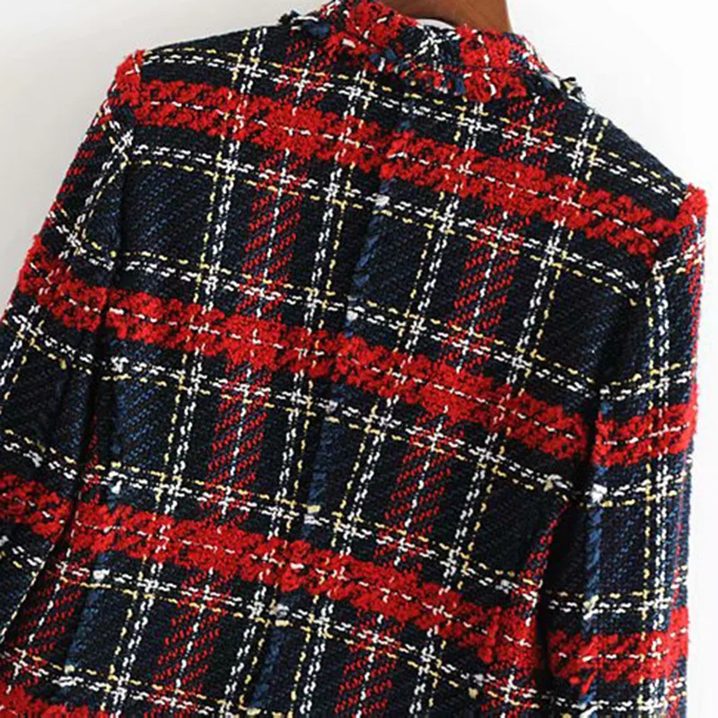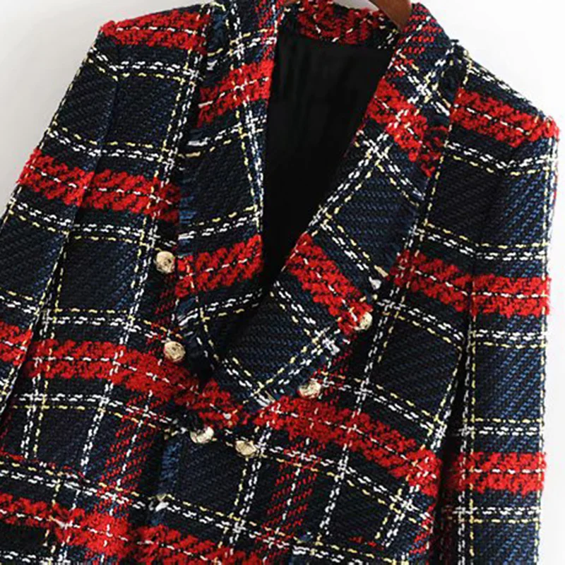 Double Breasted Frayed Checked Tweed Blazers Coat Women 2018 Fashion