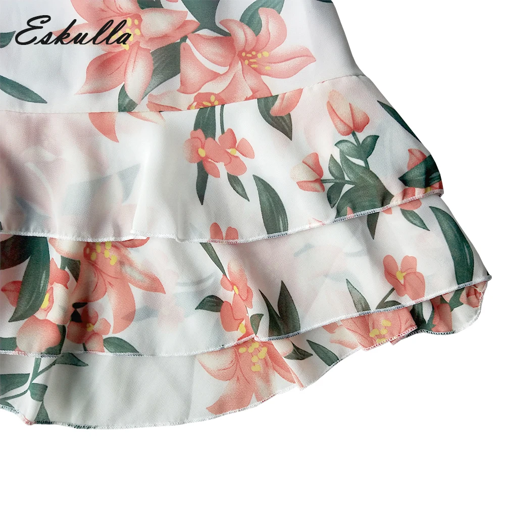 Eskulla Sexy Party Dress Women Summer Print Deep V Neck Backless