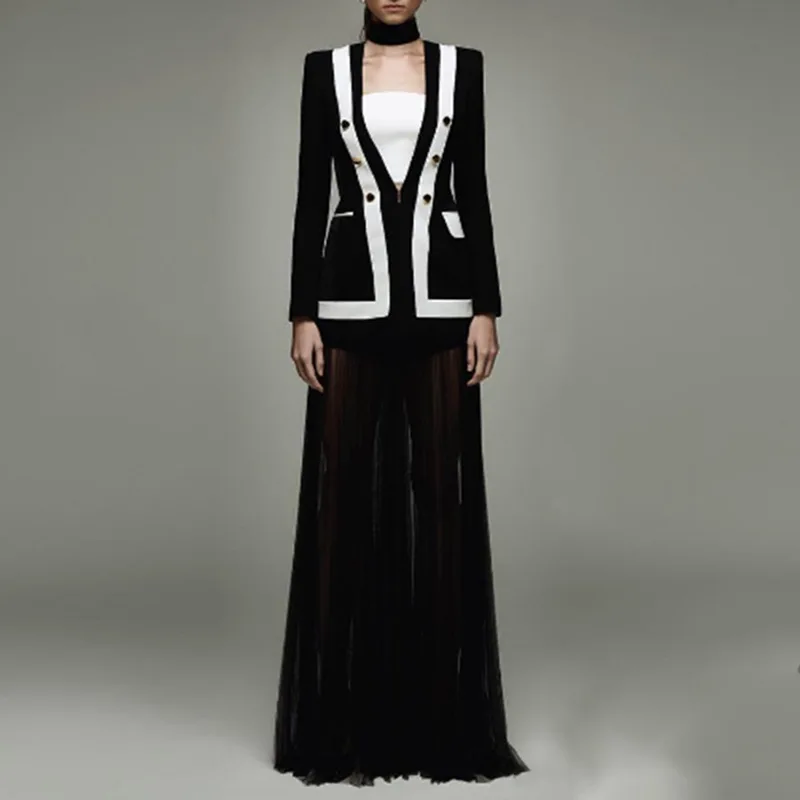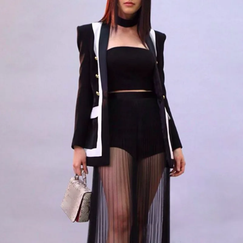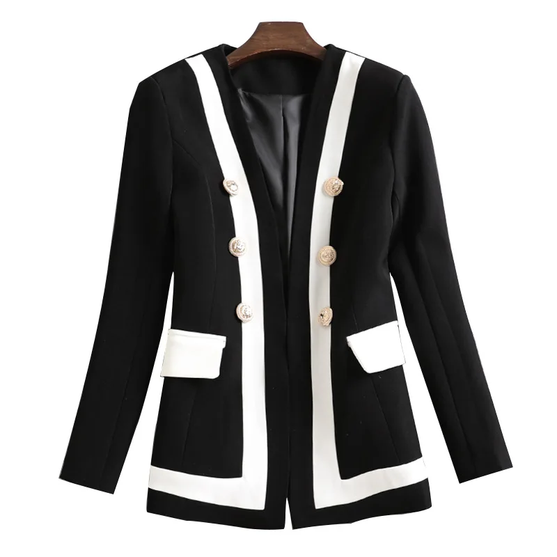 Picture for European Station 2019 Women Autumn New Joker Waist Contrast Color Metal Buttons Women Small Suit Black Jacket Women Coat