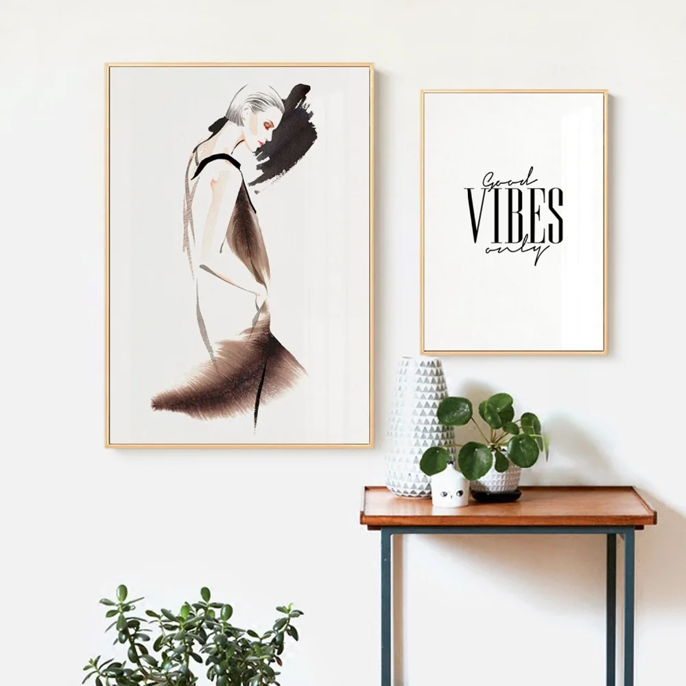 Fashion Girl Poster Motivational Quotes Wall Art Nordic Style Canvas