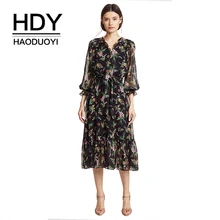 Well, before you decide to buy, it's good to look at the picture details about the product HDY Haoduoyi Printed Flower High Waist with Belt Smocking Long Falbala Sleeve Midi Dress V-neck Sweet Brief Chiffon Dress. Next, you can directly visit the official store to find out the full description, prices and discounts offered.
