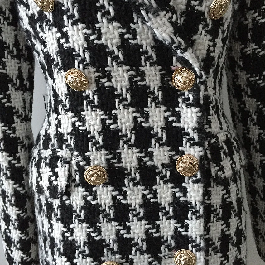 Buckle Double-row Buckle Tweed Long Coat Jackets Women