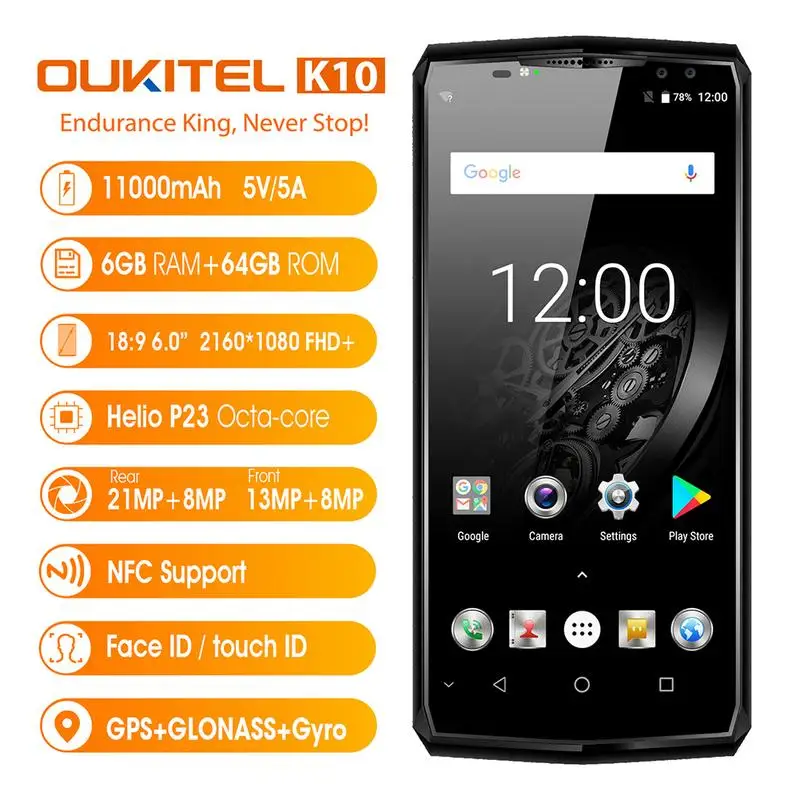 Well, before you decide to buy, it's good to look at the picture details about the product Original Oukitel K10 Face ID 6.0" 18:9 Display Helio P23 6GB RAM 64GB ROM 11000mAh Quick Charge MT6763 Fingerprint NFC Cellphone. Next, you can directly visit the official store to find out the full description, prices and discounts offered.