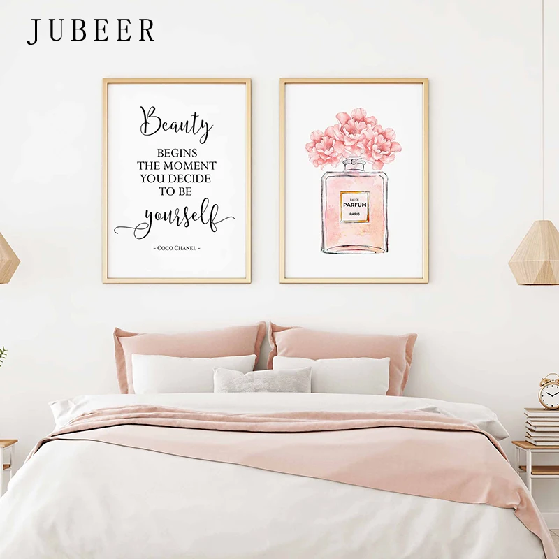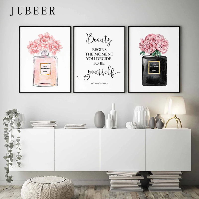 Well, before you decide to buy, it's good to look at the picture details about the product Perfume Bottle Wall Art Perfume Posters and Prints Beauty Begins Quote Print Watercolor Flower Pictures Bedroom Decoration. Next, you can directly visit the official store to find out the full description, prices and discounts offered.