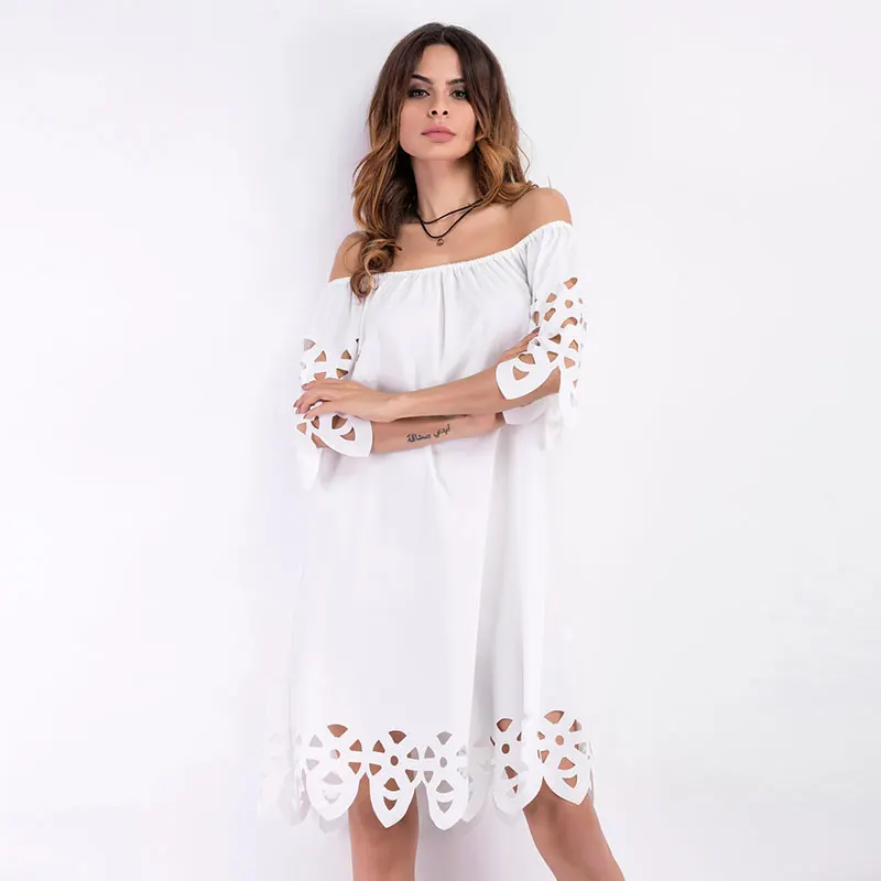 Picture for Sexy Off Shoulder short Summer Dress vestidos de fiesta Flexible Women Dress Sexy openwork white dress maxi Party Beach Dresses
