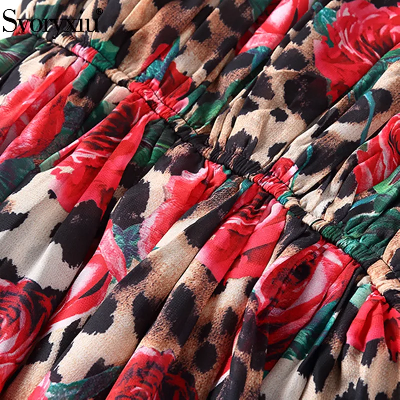 Picture for Svoryxiu Runway Autumn Long Sleeve Maxi Dresses Women's Vintage Rose Floral Leopard Printed Custom Big Size Robe Maxi Long Dress