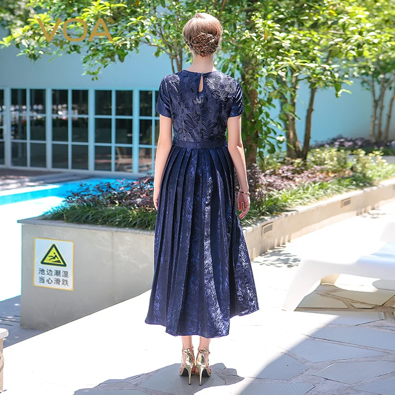 Well, before you decide to buy, it's good to look at the picture details about the product VOA 2017 Summer Navy Blue Short Sleeve High Waist Vintage Silk Embroidery Pleated Dress Plus Size Women Sexy Maxi Dress ALX02801. Next, you can directly visit the official store to find out the full description, prices and discounts offered.